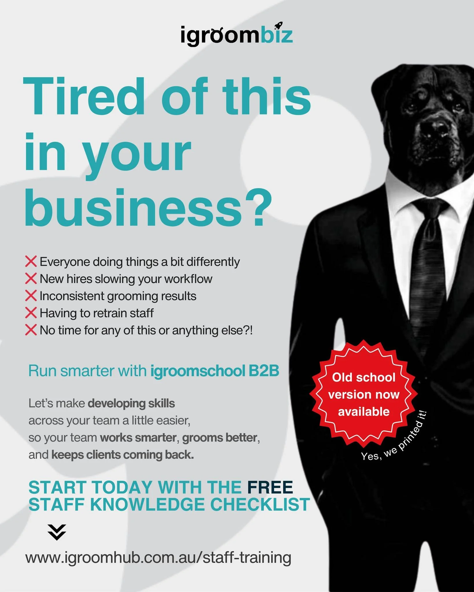 Simplify your business management with ready-to-use tools. Access staff training, WHS resources, onboarding checklists, and employment forms built for grooming professionals.