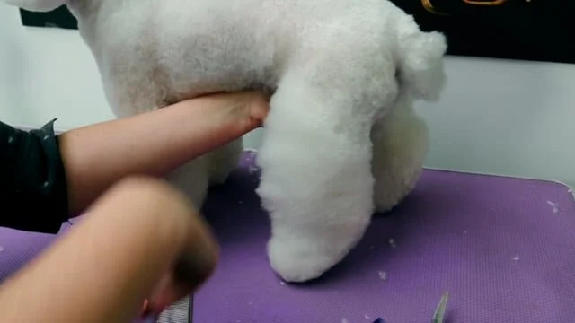 Part 5 Moving on to the front legs, scissoring the big flare on the front leg while setting in the top and foot of the front leg.