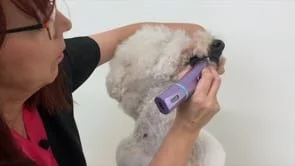 Use the #7blade on the body, excluding the heart and collar, blending carefully to avoid harsh lines.