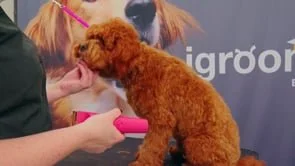 Lucius the 1yo Cavoodle puppy is having a bath and tidy up with Michelle. He is new to grooming, so having a tidy between grooms is ideal to help settle him into a great grooming regime.