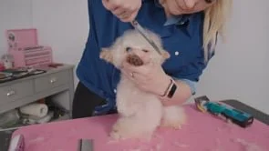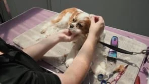 Michelle gently grooms 13-year-old Daisy the Cavalier in this calm, thoughtful tutorial focused on senior care. With limited muscle strength and some visible discomfort, Daisy spends much of the groom lying down. Michelle walks you through how to keep elderly dogs safe, clean, and comfortable, even when the groom isn’t picture-perfect. This tutorial is all about listening to the dog, adapting your techniques, and knowing when to call it a day.