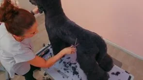 Meet the lovely Koro! Prue's beautiful Standard Poodle. Prue is setting him into a German Trim. He has 7 months of growth and has been washed in ProGroom Black Shampoo. He has been fluff dried and combed through, all ready for a new look!