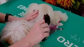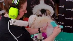 In this tutorial, Colleen works through the full fluff drying process on a curly coat, using a competition dog with significant coat length.
