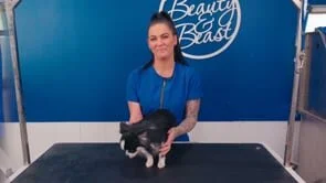 PART 2 Yoshi has his undercoat removed to reveal a gorgeous black coat. He is then shaped up and ready for the ring! The aim of the next process is to get the jacket sitting flat.