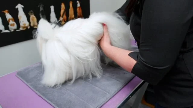 Trim hair touching the ground to maintain hygiene and avoid matting.