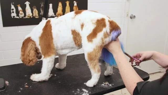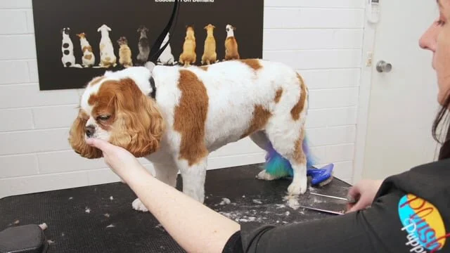 Foley is a beautiful Cavalier King Charles Spaniel. He is having a very common service - a bath and tidy. Michelle takes us through the process of trimming this pet.
