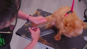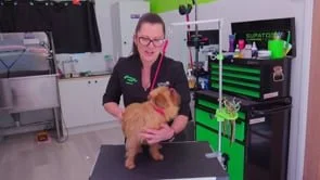 In this tutorial, Michelle will be grooming the gorgeous Griffon, Bonnie. Instead of a full hand strip, Michelle will be performing a pet strip, aiming to maintain Bonnie’s texture, color, and distinctive square shape.