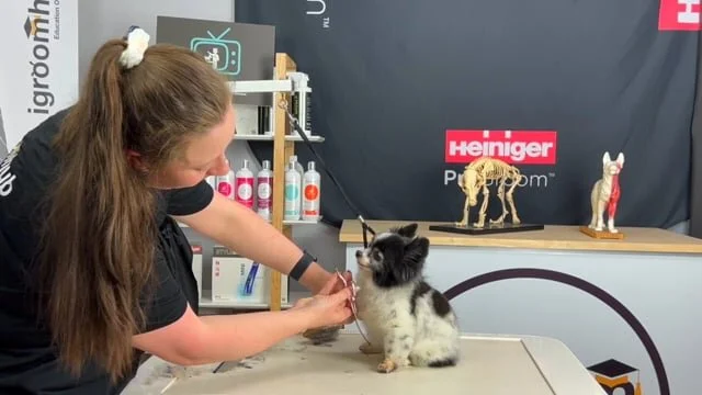 Little senior Sooty shares her tidy up groom today with Colleen. Handling and clipper angles are important on tiny dogs - some are too small to get the clippers under, and may need smaller scissors to achieve the correct angle. Colleen also talks about Sooty’s alopecia, which, in this case, is a loss of guard hair in her double coat as a result of clipping.