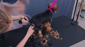 PART 1 Jess sets the body in with a dark blue extension comb. Traditionally the coat is left long and silky. Kenji's parents enjoy an easy maintenance clip.