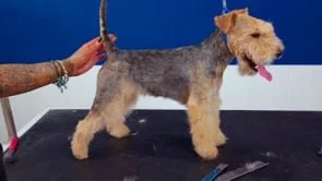 Lexi is a Lakeland Terrier who has just come into season, which means her normally rolled coat has completely blown out. With no layers left and very little undercoat, Alicia takes her right down to her shortest workable layer and rebuilds the outline from scratch. This tutorial walks you through correct Lakeland breed structure, how to maintain a crisp silhouette even on a compromised coat, and why moderation is the key word in every part of this trim.