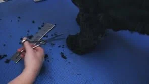 PART 2 Scissoring in the rear leg using chunkers to help set in the lines, and also help blend in a few holes the owner left us