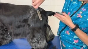 Nicky demonstrates a beautiful English Cocker Spaniel groom to breed standard for a Show or Competition