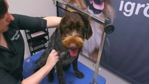 How do you know if a coat is blown? Michelle Weber has the answers for you, and much more. In this series of videos, featuring beautiful 10 month old GWHP Rue, Michelle demonstrates how to maintain a wire haired coat that is blown. You can view the breed standard for this dog here.