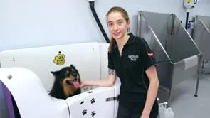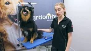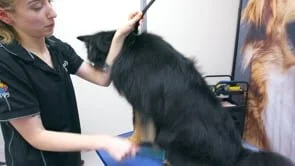 Part 3 Jess assesses the coat then speaks to equipment choices, and how to line brush and comb through the dog till the coat feels ‘airy-like’.