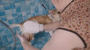 PART 1 Lucy gets two shampoos and a conditioning rinse, with Tay showing how to thoroughly wet, wash, and rinse a young double coat without overwhelming the pup. You’ll see how to protect ears and eyes, how to apply whitening soap safely, and how to make bath time feel secure and manageable for wiggly little bodies.