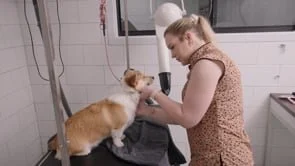 Taylan Bradley walks you through a gentle introduction to bathing, drying, and tidying up a young Welsh Corgi puppy named Lucy. At just 5 or 6 months old, Lucy is still getting used to the grooming process, so this tutorial focuses on building trust, working safely with a long-backed breed, and introducing tools and sensations in a calm, supportive way. From her soggy puppy face to her sculpted mini peach bum, this tidy-up is all about creating positive early experiences.