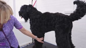 In this masterclass, Tiarne works through a full groom on Dom, a young Black Russian Terrier, while sharing how this breed was originally developed by the Russian military to be a powerful, intimidating guard dog that was still manageable to handle. The breed is a combination of the Newfoundland, Rottweiler, Giant Schnauzer, and Airedale Terrier, resulting in a dog that is both imposing and highly capable.