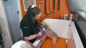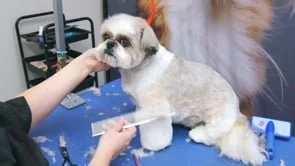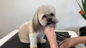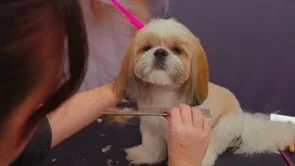Alfie the Shih Tzu is a cheeky soul. He has come a long way but can be a handful. Michelle shows you a few alternative handling techniques for fussy floofs. She uses an extension comb on this drop coat. Alfie has had his basics and bath done prior to filming.