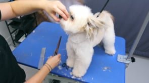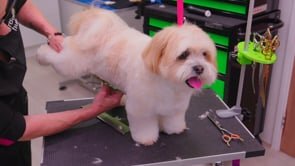 Moosh Moosh and Michelle demonstrate a salon style trim - a shorter body with longer legs, and cute round face. Michelle also speaks about using routine, speed tips, handling the Maltese x Shih Tzu, and some coat tips.