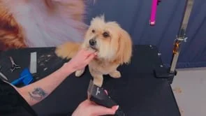 Coco and Nick perform a cute little salon trim. Coco is a Pom x Poodle and has an interesting coat - we actually weren’t sure whether to pop this tutorial under straight or curly coats! It’s fluffy. But straight. And thinning. Making the most of a dog’s unique features, in this case, the ears, really lets the personality of the pup shine through!