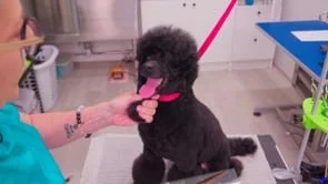 PART 4 The head study. Styling a topknot is fun! Bring the back of the neck in to suit the dog and owner's lifestyle. Most owners are not fantastic at brushing long hair. This is overall a low maintenance groom for an owner, but they still have to brush the dog.