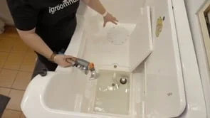 There are two styles of bath - hydrobaths and stainless steel baths. First up we take a look at a hydrobath with Nat - a mechanical way to bath a dog.