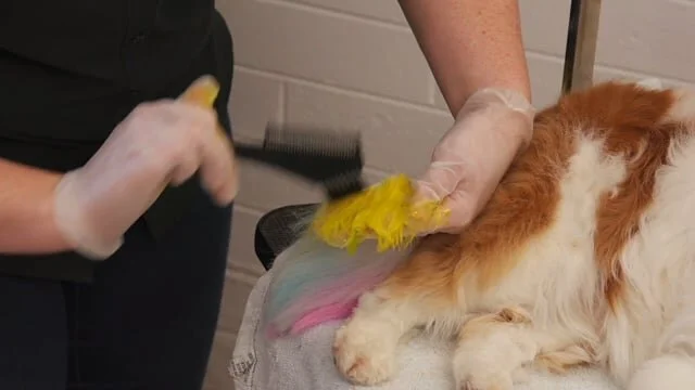 In this video, we’ll be showcasing a creative grooming session with Cracker, a Sheltie who’s about to get a colorful makeover. Watch as Jess demonstrates how to safely apply vibrant, pet-friendly dyes using an airbrush, transforming Cracker's collar into a rainbow masterpiece. This tutorial covers essential safety tips to ensure the process is enjoyable and safe for both groomer and dog. Enjoy the colorful transformation!